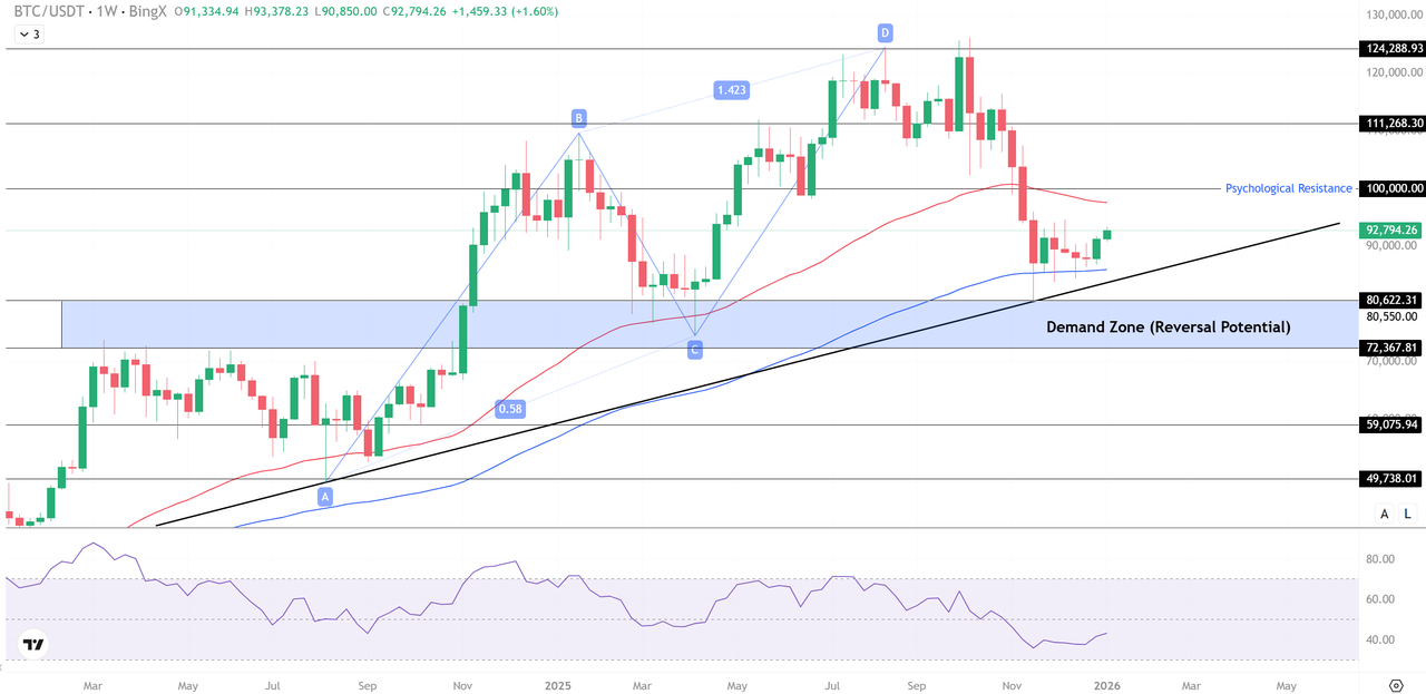 비트코인의 구조는 ETF 유입, 지정학적 중요성, 그리고 장기 수요로부터의 확인된 기술적 반등에 힘입어 건설적인 상태를 유지하고 있습니다. BTC가 주요 지지선 위에 머무르고 기관 유동성이 지속되는 한, 기술적 로드맵은 100,000달러 재돌파를 가리키며 2026년에 접어들면서 비트코인이 암호화폐 시장의 서사를 확고히 주도할 것임을 시사합니다.