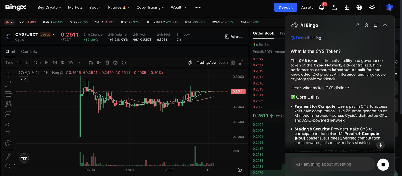 BingX AI 인사이트로 구동되는 현물 시장의 CYS/USDT 거래 쌍