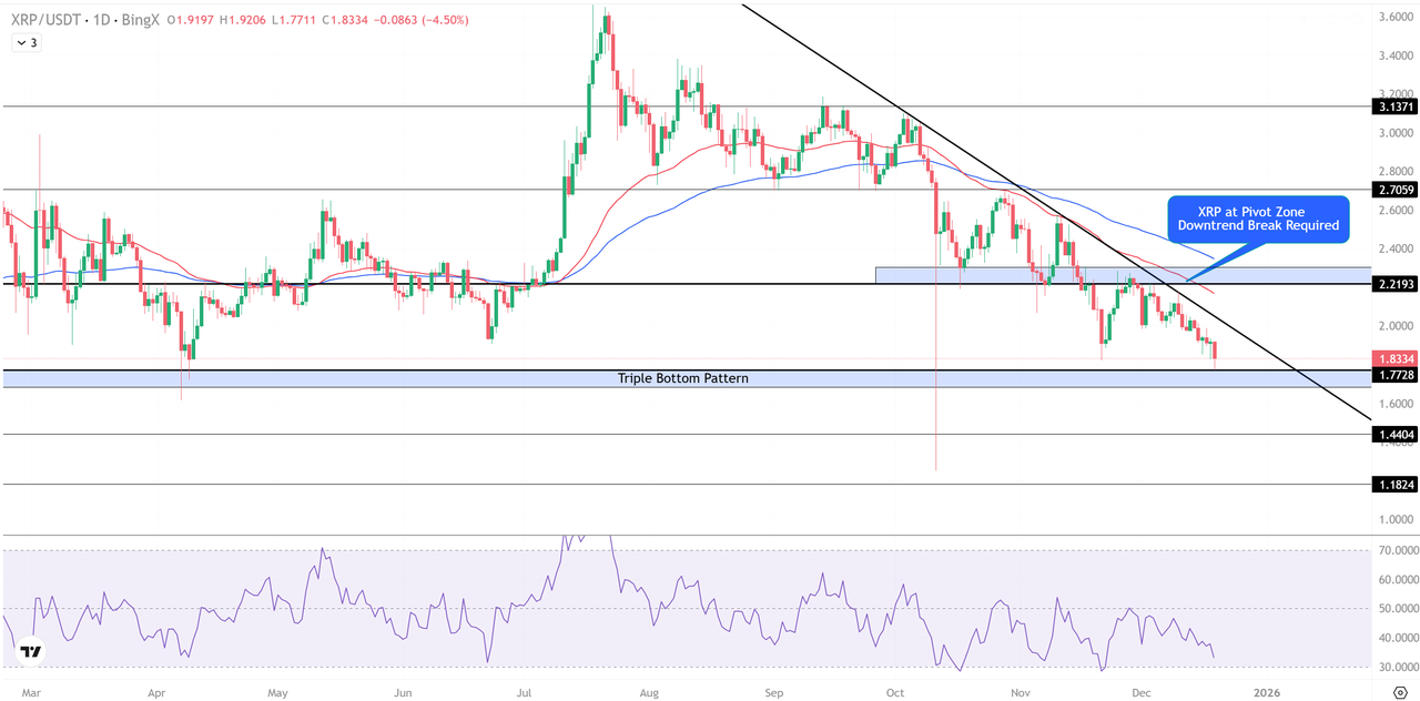 XRP 일일 전망: 피벗 존 유지, 하락 추세 여전히 지배적
