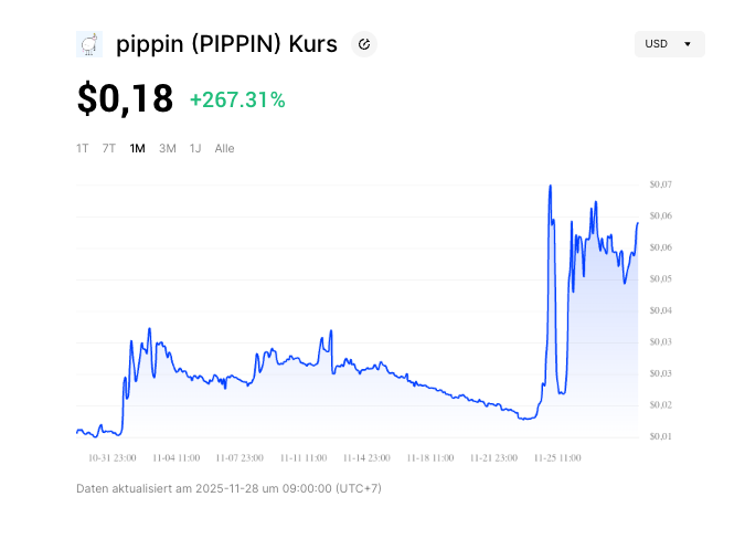 3. 피핀(PIPPIN): 고래들의 관심을 받는 솔라나 밈코인