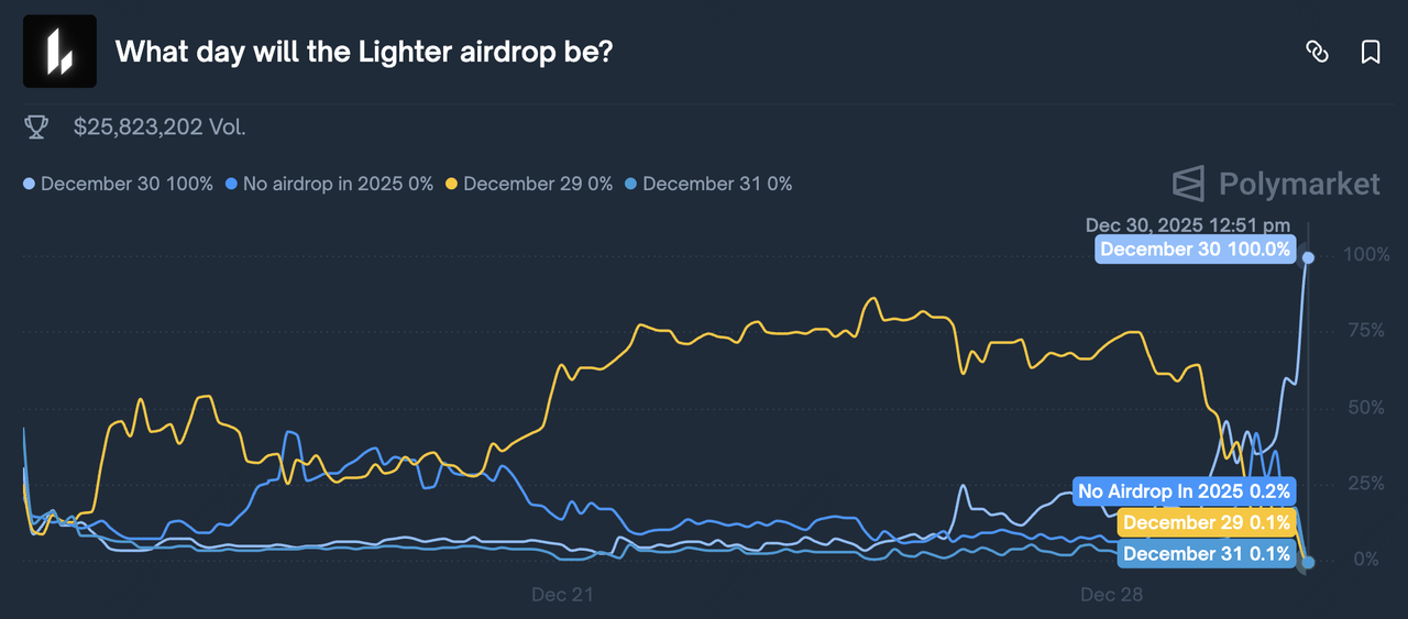 Lighter 에어드롭 시기에 대한 Polymarket 설문 | 출처: Polymarket