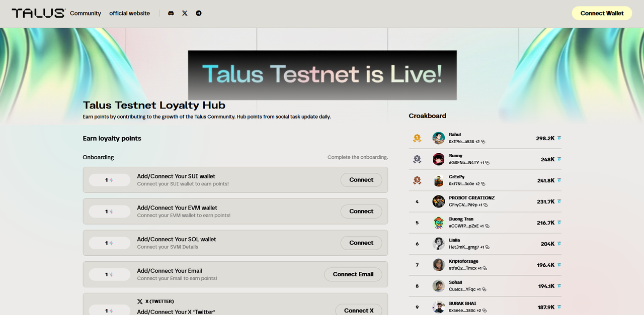 탈러스 네트워크(Talus Network) 에어드롭은 2025년 말 가장 기대되는 토큰 이벤트 중 하나로 빠르게 부상했습니다. 폴리체인 캐피탈(Polychain Capital), 수이 재단(Sui Foundation), 포사이트 벤처스(Foresight Ventures) 및 기타 최고 수준 투자자들로부터 1천만 달러 이상의 자금을 지원받은 탈러스 랩스(Talus Labs)는 온체인 AI의 다음 시대를 위한 인프라 레이어를 구축하고 있습니다. 그들의 핵심 프로토콜인 넥서스(Nexus)는 자율 에이전트가 온체인에서 실제 경제 활동을 수행할 수 있도록 하여, 탈러스가 “자율 디지털 경제(autonomous digital economy)”라고 부르는 신흥 경제를 강화하고 있습니다.