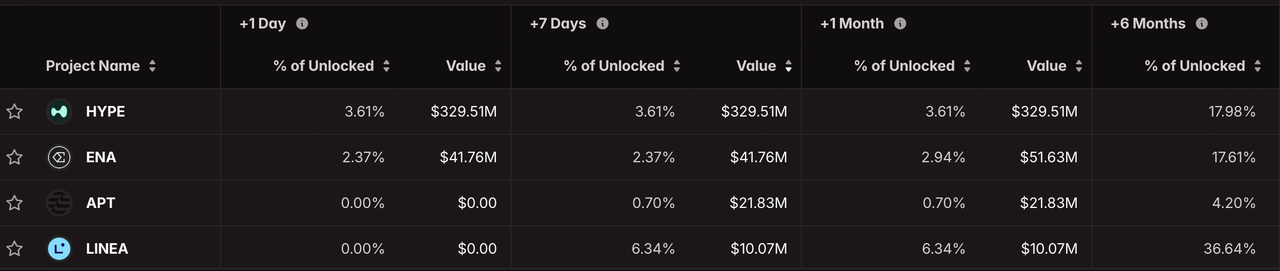 2025년 11월 주요 토큰 잠금 해제: HYPE, WLD 및 주목해야 할 다른 토큰들