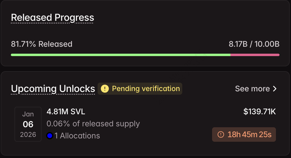 슬래시 비전 랩스(Slash Vision Labs)는 12월 말부터 1월까지 약 2억 3,476만 개의 SVL 토큰을 출시했으며, 이 대규모 토큰 수량이 유통 역학에 영향을 미치고 있음에도 불구하고 그 가치는 약 690만~700만 달러였습니다. 신흥 인프라 프로젝트로서 유통 공급량 대비 높은 토큰 수량은 유동성이 낮은 시장에서 가격에 충격을 줄 수 있어, 수량 주도 변동성의 전형적인 예시가 됩니다.