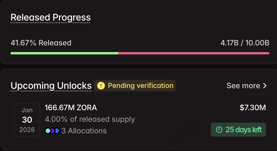 조라는 12월 31일부터 1월 1일경 1억 4,058만1억 6,660만 개의 ZORA 토큰을 언락했으며, 그 가치는 약 680만700만 달러였습니다. 베이스(Base) 기반의 크리에이터 중심 프로토콜로서 성장하는 NFT 및 소셜 기능을 갖추고 있으며, 정확한 수량에 대한 추적기 불일치는 불확실성을 더하여 크리에이터 경제 섹터에서 내러티브 주도 변동성을 종종 증폭시킵니다.