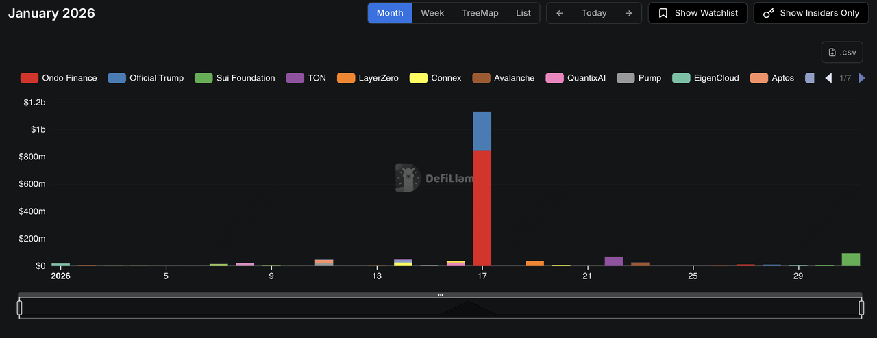 2026년 1월 주목해야 할 주요 토큰 언락은 무엇인가요?