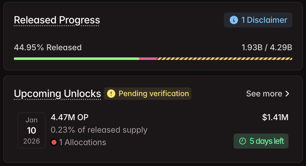 • 언락될 토큰 수: 약 3,134만3,200만 OP (총 공급량의 2.32%)