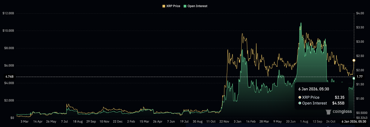 XRP의 최근 상승세는 2025년 말 여러 회복 시도를 저지했던 2.12달러 저항선 위로의 명확한 돌파 이후에 나타났습니다. 이 움직임은 평균 이상의 거래량과 개선된 온체인 및 파생상품 데이터에 의해 뒷받침되며, 이번 랠리가 단기적인 투기적 급등보다는 구조적 수요에 의해 주도되고 있음을 시사합니다.